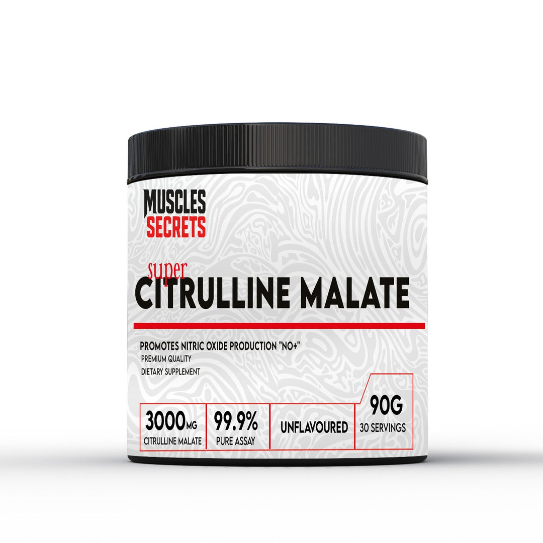 Maximize Your Pump and Blood Flow Unlock superior performance and vascularity with Muscles Secrets Super Citrulline Malate. This premium-quality dietary supplement is specifically formulated to help athletes and fitness enthusiasts optimize their training results by supporting the body’s natural processes for energy and blood flow. Key Features & Benefits Nitric Oxide Support: Expertly designed to promote Nitric Oxide production (“NO+”), which helps improve blood flow and nutrient delivery to working muscles. High-Potency Dose: Each serving provides a powerful 3000mg of Citrulline Malate to support your most intense training sessions. Exceptional Purity: Guaranteed with a 99.9% Pure Assay, ensuring you get a clean, high-quality supplement without unnecessary fillers. Unflavoured Versatility: The unflavoured powder is perfect for “stacking” with your existing pre-workout or protein shakes without affecting the taste. Full Month Supply: One 90g container provides 30 full servings, making it a convenient addition to your monthly supplement routine.